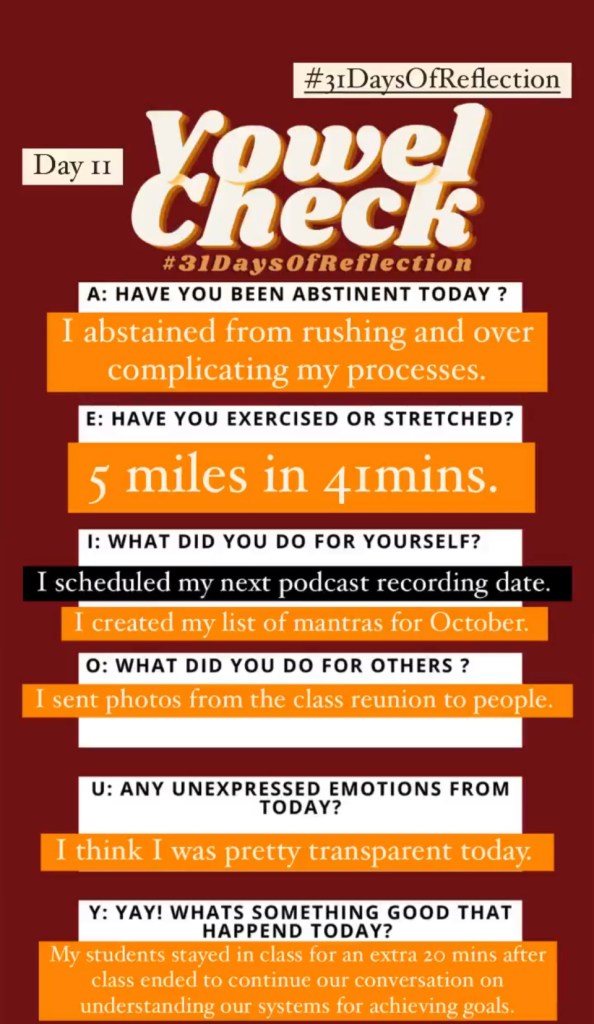 I encourage everyone to take out some time to journal and reflect on a few topics after reading this post to help you identify what habits you have in place when striving to be your best self: